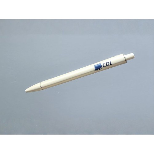 Caneta plástica branca perolada, gravação logo em 1 cor - Tinta azul